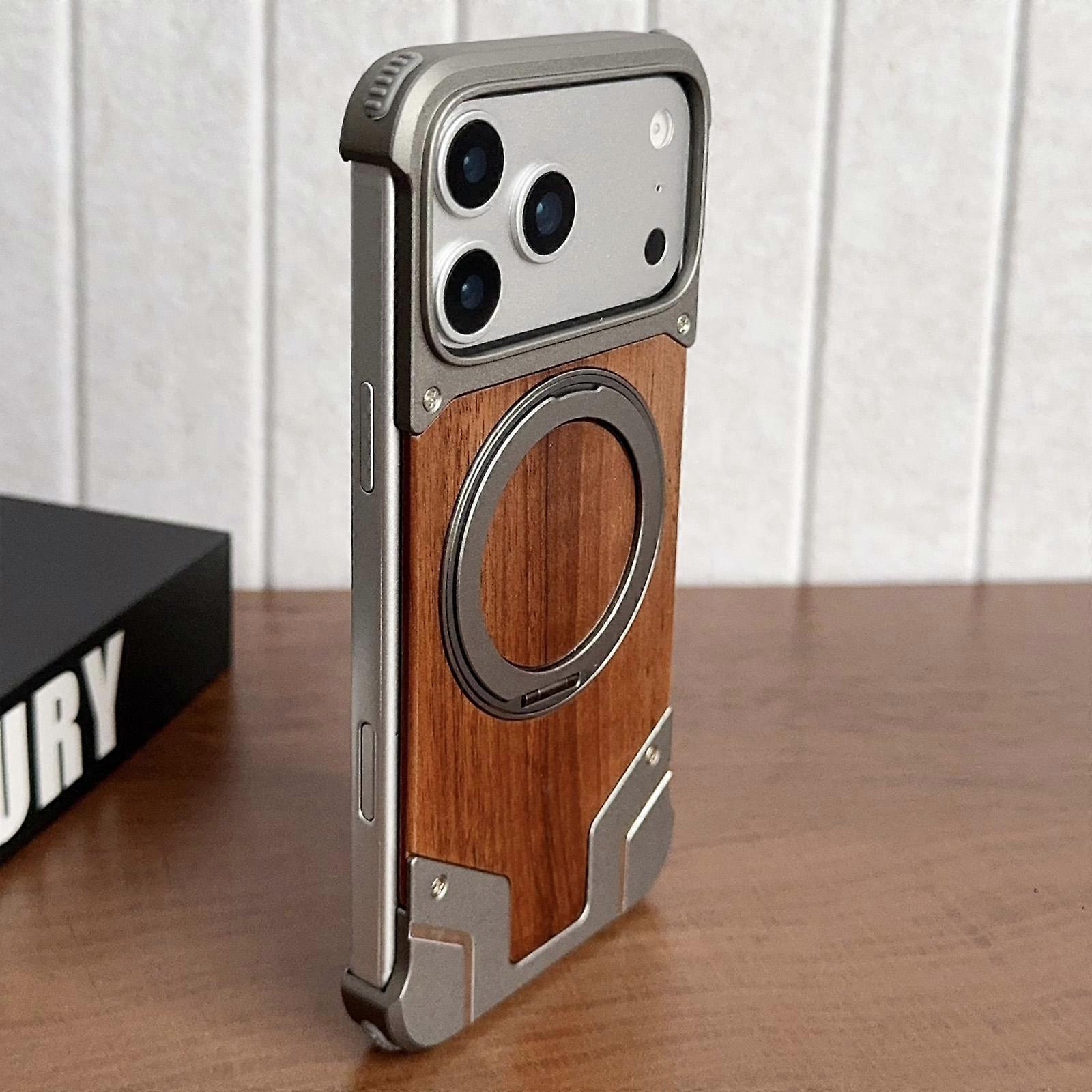 Armor Walnut Wood Metal Frameless 360 Rotation Holder Magnetic Phone Case