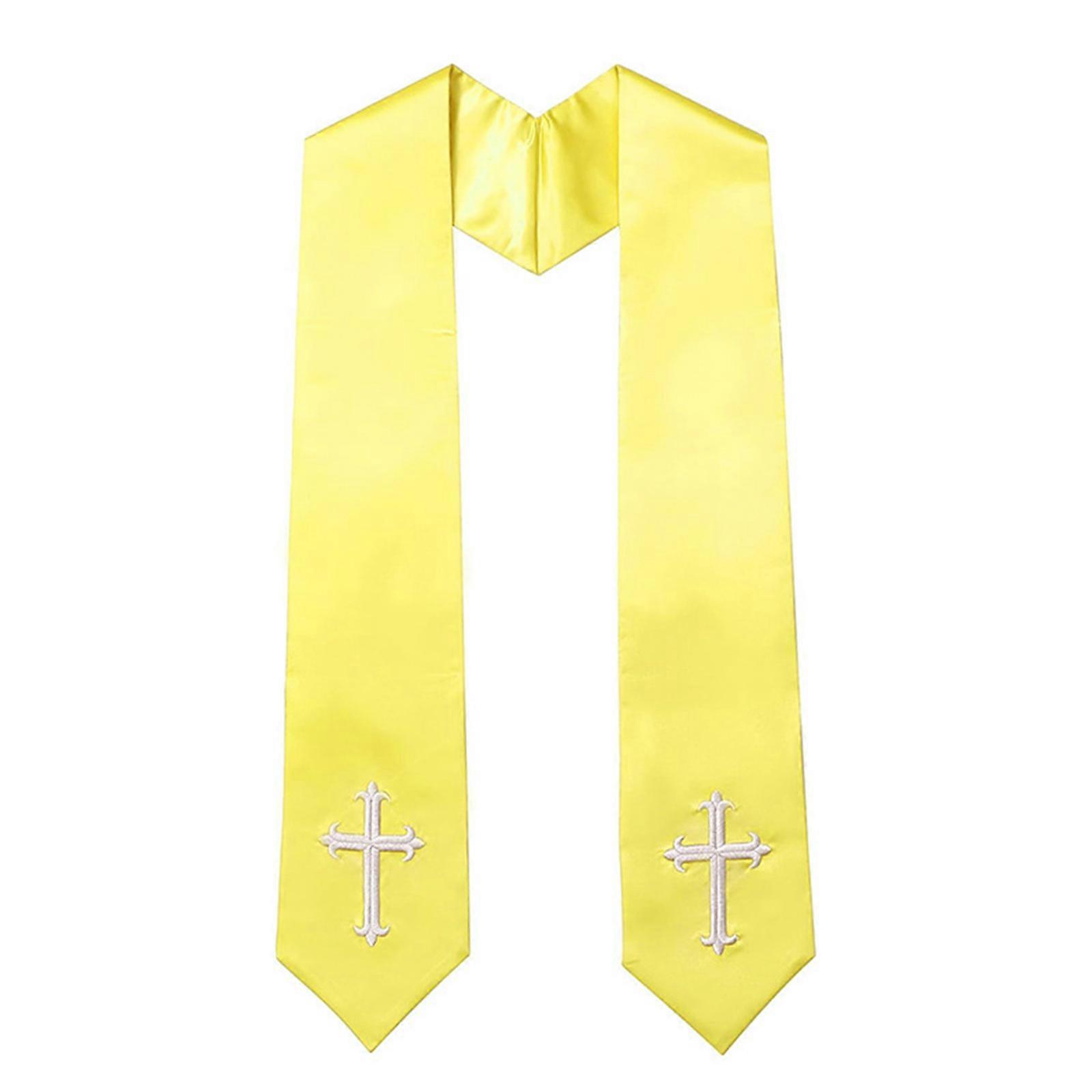 Elegant Clergy Stole Breathable Polyester Reversible Embroidered Crossed and Decorative Shawl Scarf for Religious Event Yellow