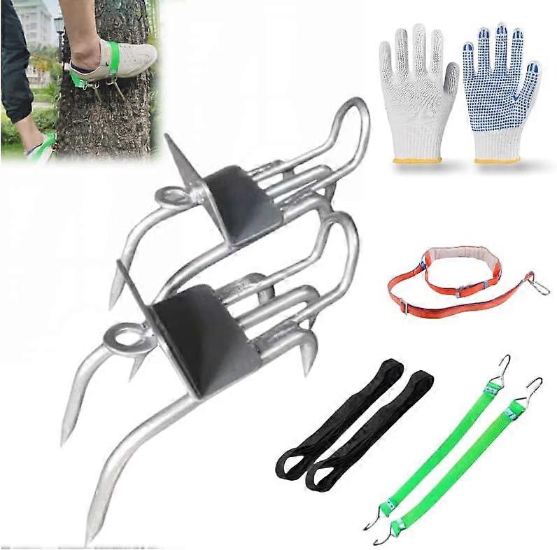 【Outdoor Tree-Climbing Anti-Slip Cat Claw Shoes Set】Designed for professionals and hunters, this kit includes secure spikes, safety straps, and adjustable pads — everything you need for tree climbing<br>【Versatile for Multiple Uses】Perfect for tree stand hunting, pruning, trimming, logging, outdoor rescue, or climbing practice. A must-have tool for arborists and outdoor workers.While designed for tree climbing, this set can also be used for a variety of other simple outdoor climbing activities on vertical surfaces<br>【Portable &amp; Easy to Use】Lightweight design with fast strap-on application — fits easily into a gear bag or hunting pack for field readiness<br>【Built for Safety and Comfort】Equipped with anti-slip spikes, ergonomic leg pads, and strong adjustable straps to ensure a stable and comfortable climb, even for long hours<br>【Durable &amp; Weather-Resistant Build】Crafted from premium steel and wear-resistant materials to withstand rugged use in forest, mountain, and backcountry environments