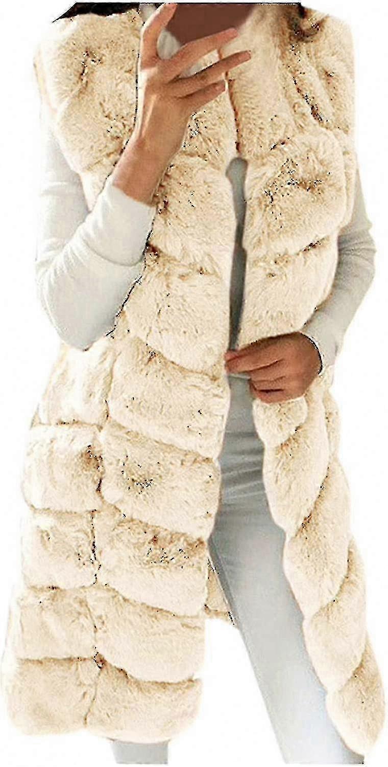Women's Winter Warm Sleeveless Faux Fur Vest Open Front Plush Gilet Outerwear