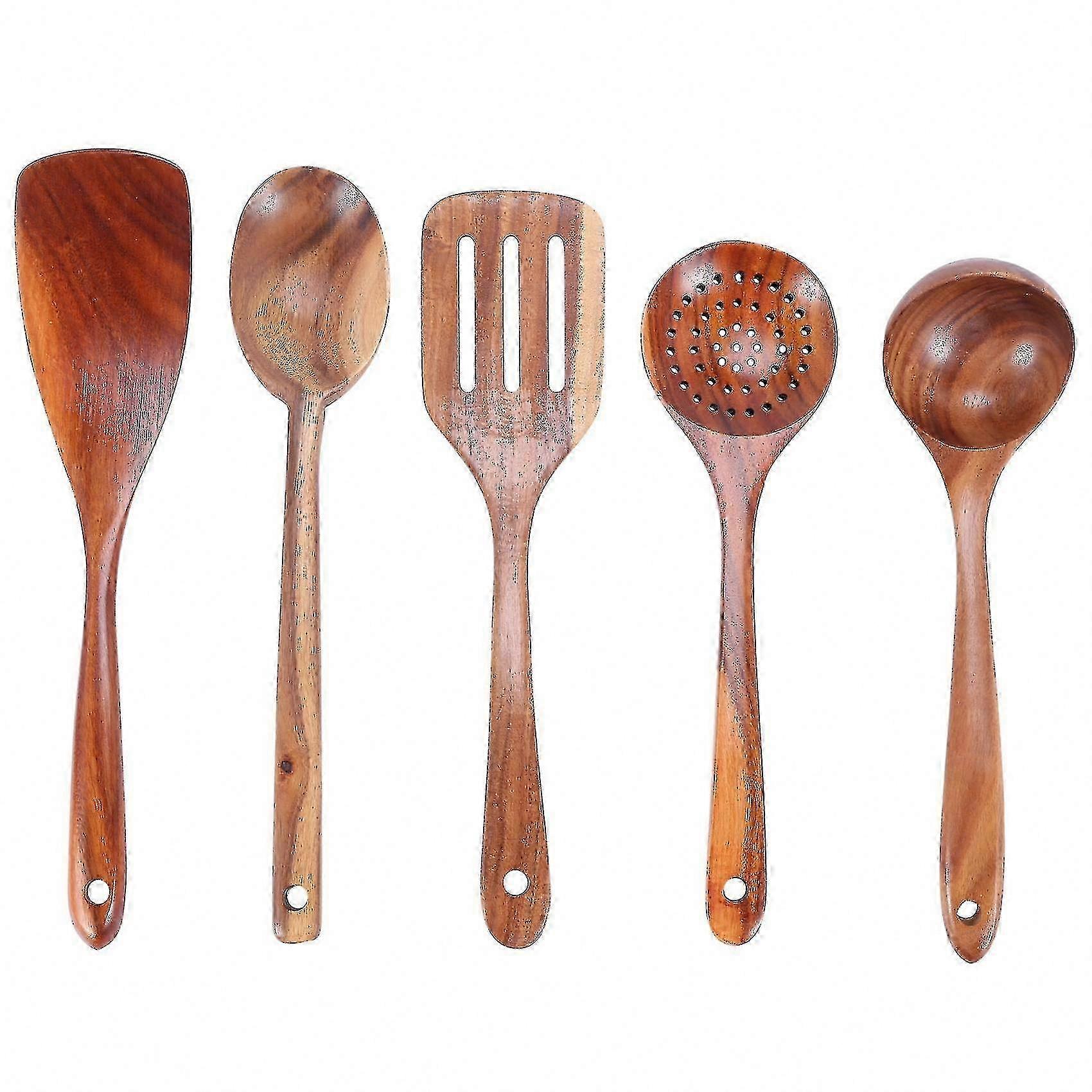 Natural Wooden Cooking Utensils Set - Nonstick Hardwood Spatula and Spoon Collection for Healthy Kitchen Use