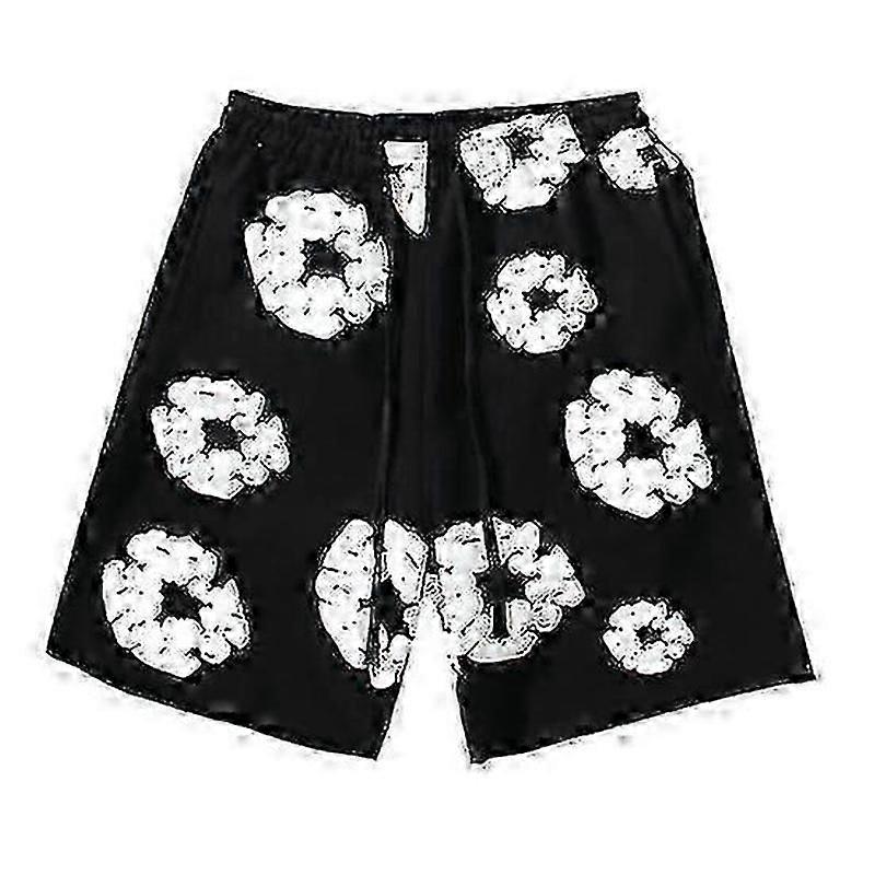 Men's beach casual shorts floral print elastic waist L