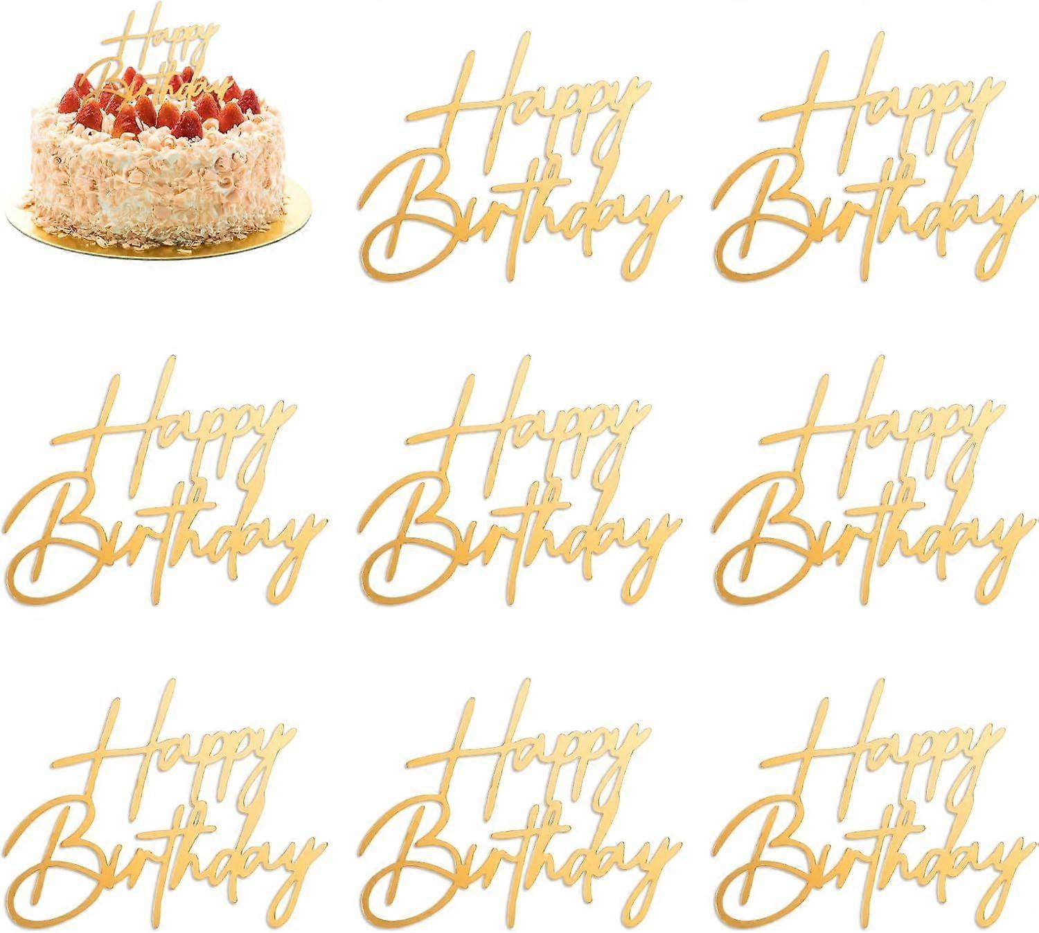 10 Pcs Side Gold Happy Birthday Cake Topper Acrylic Cake Decorations for Birthday Party Cakes Dessert