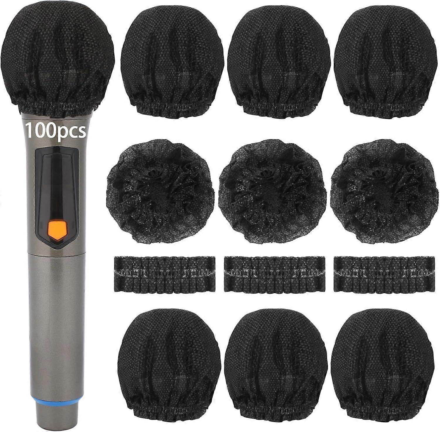 100 PCS Disposable Microphone Cover Black Non-woven Windscreen Mic Cover Protective Cap for Ktv Home Karaoke Bar News Interview Most Handheld Mic