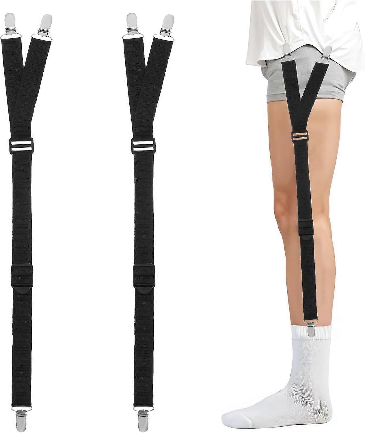 Mabor 2PCS Shirt Stays For Men Durable Elastic with Non-Slip Locking Clamps Adjustable Shirts Holder Anti-slip Locking Clamps Keep Shirt Tucked In (Black) Product description Specifications: Product Name: 2pcs shirt stays for men Color: Black Material: Polyester+Zinc Alloy Product size (cm): 50-75cm in length Product size (inches): Length 19.7-29.53 inches Packing list: 2pcs shirt stays for men