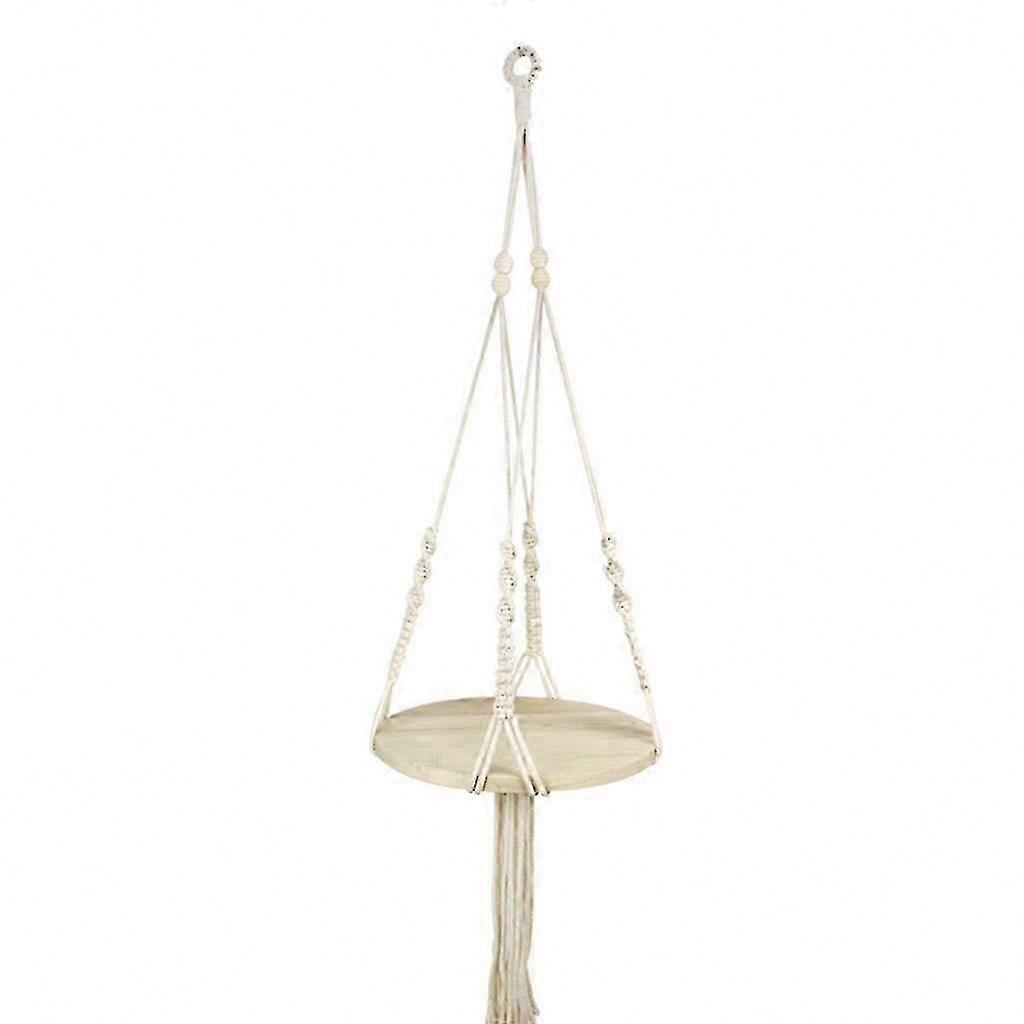 Boho Style Woven Plant Hanger with Wooden Tray for Indoor Flower Pots and Decorative Tassels