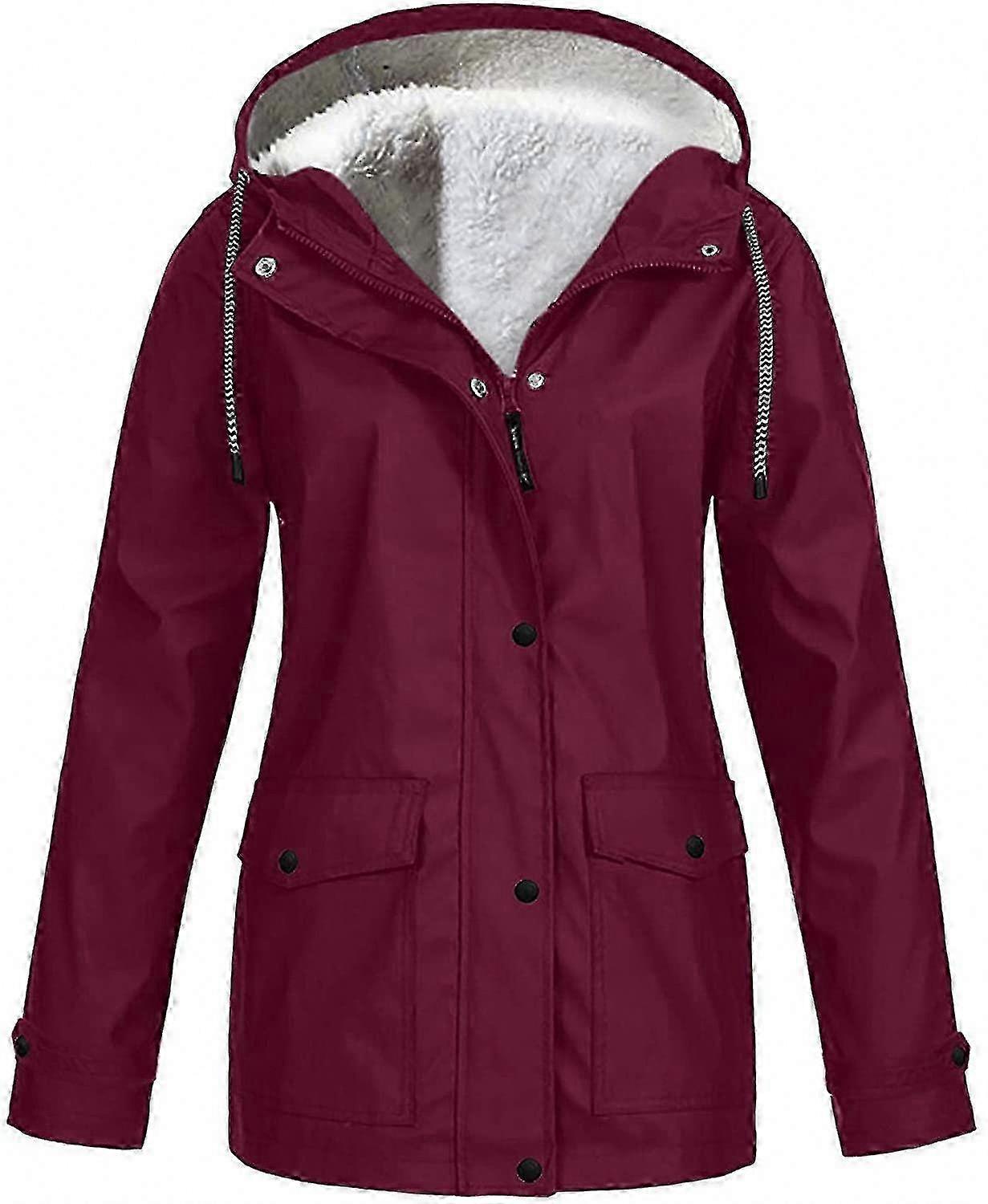 Women's Winter Waterproof Hooded Jacket Fleece Lined Snow Coat Solid Color Outdoor Warm Ski Raincoat