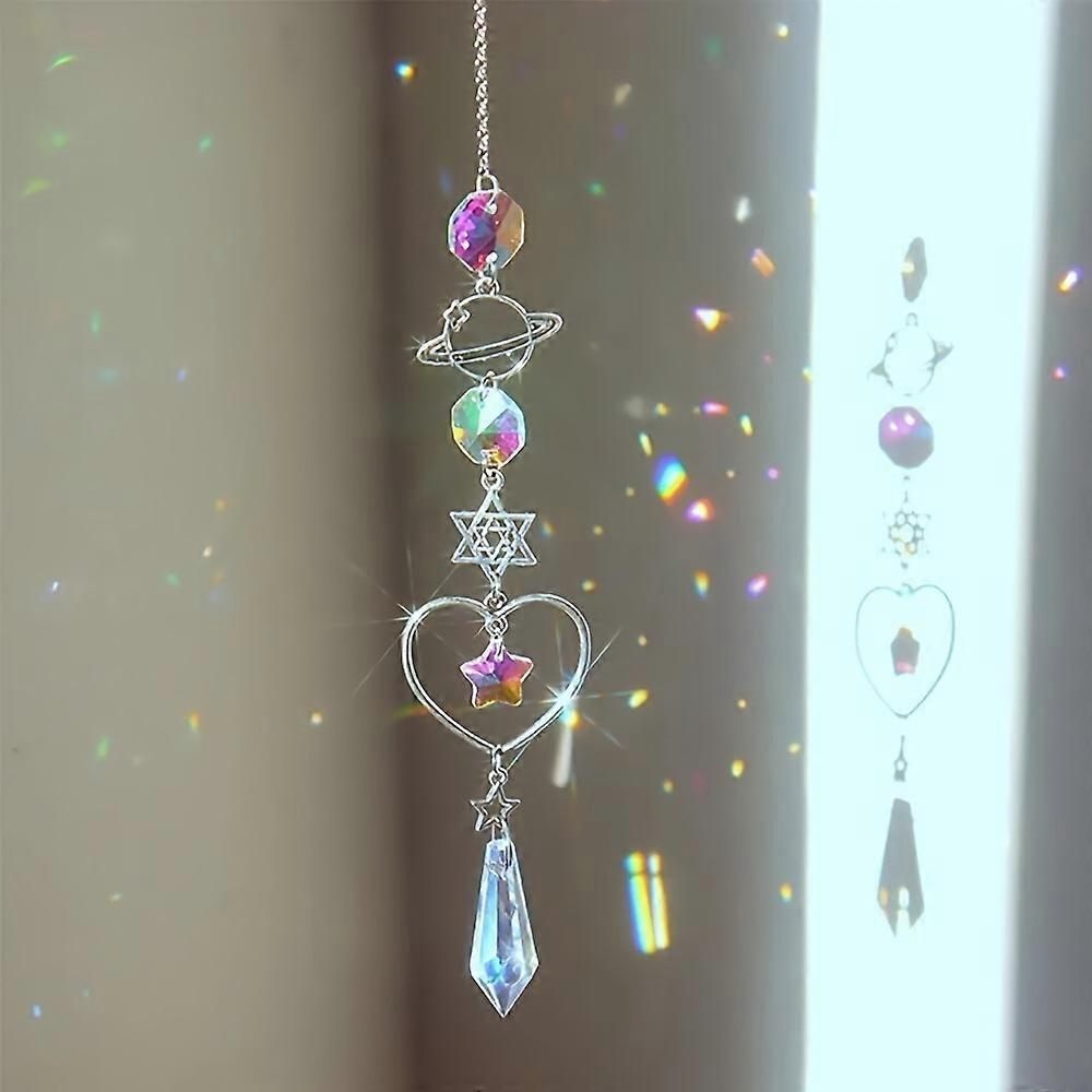 Hanging Crystal Pendant Garden Suncatcher Wind Chimes Rainbow Prism Crystal Chain for Window Drop Bell Christmas Tree Home Decor