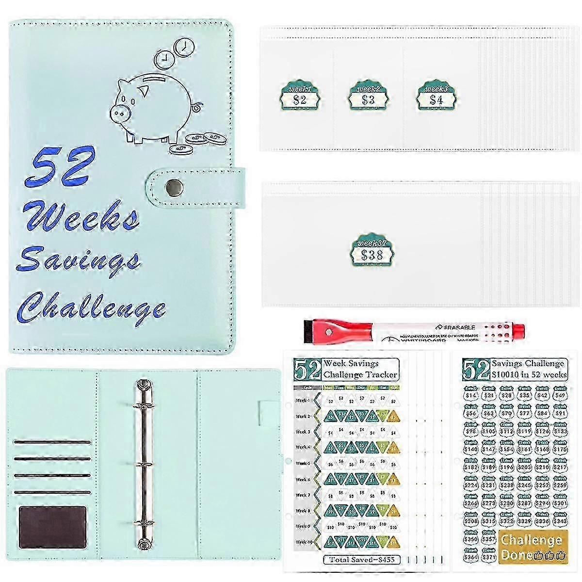 52 Week Money Saving Challenge Binder with Cash Envelopes for Budget Planner, Financial Blue