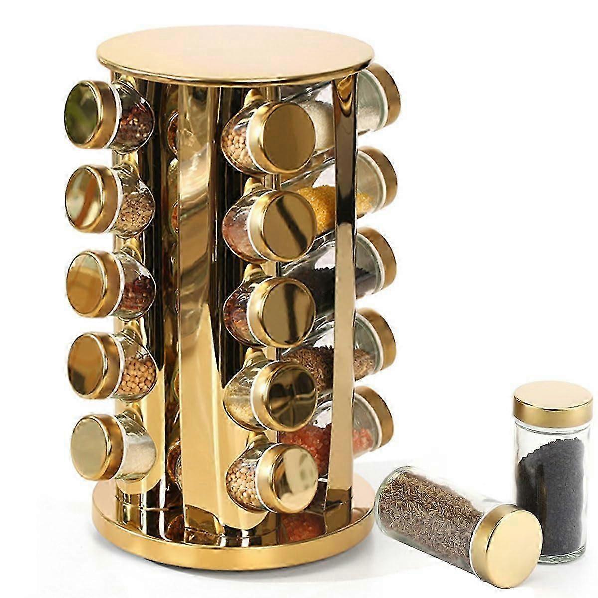 Spice Rack Organizer with 20 Glass Jars and Airtight Metal Lids for Kitchen Countertop
