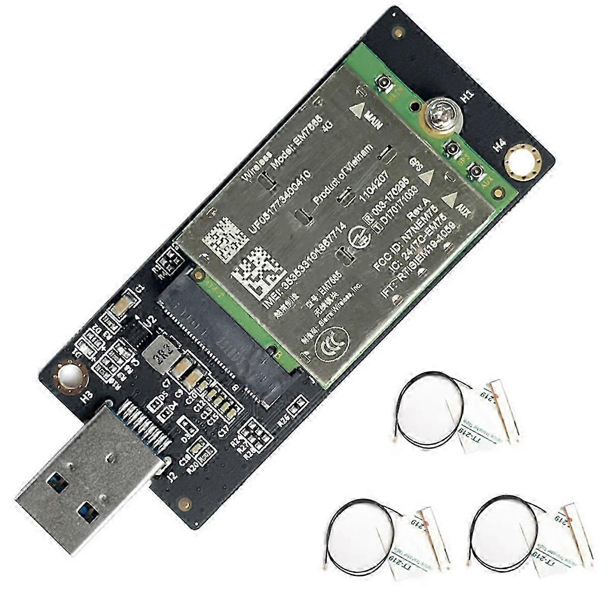 EM7565 4G LTE Cat12 Module with 3 Antennas & USB Adapter - 600Mbps CBRS NGFF Module for Laptop