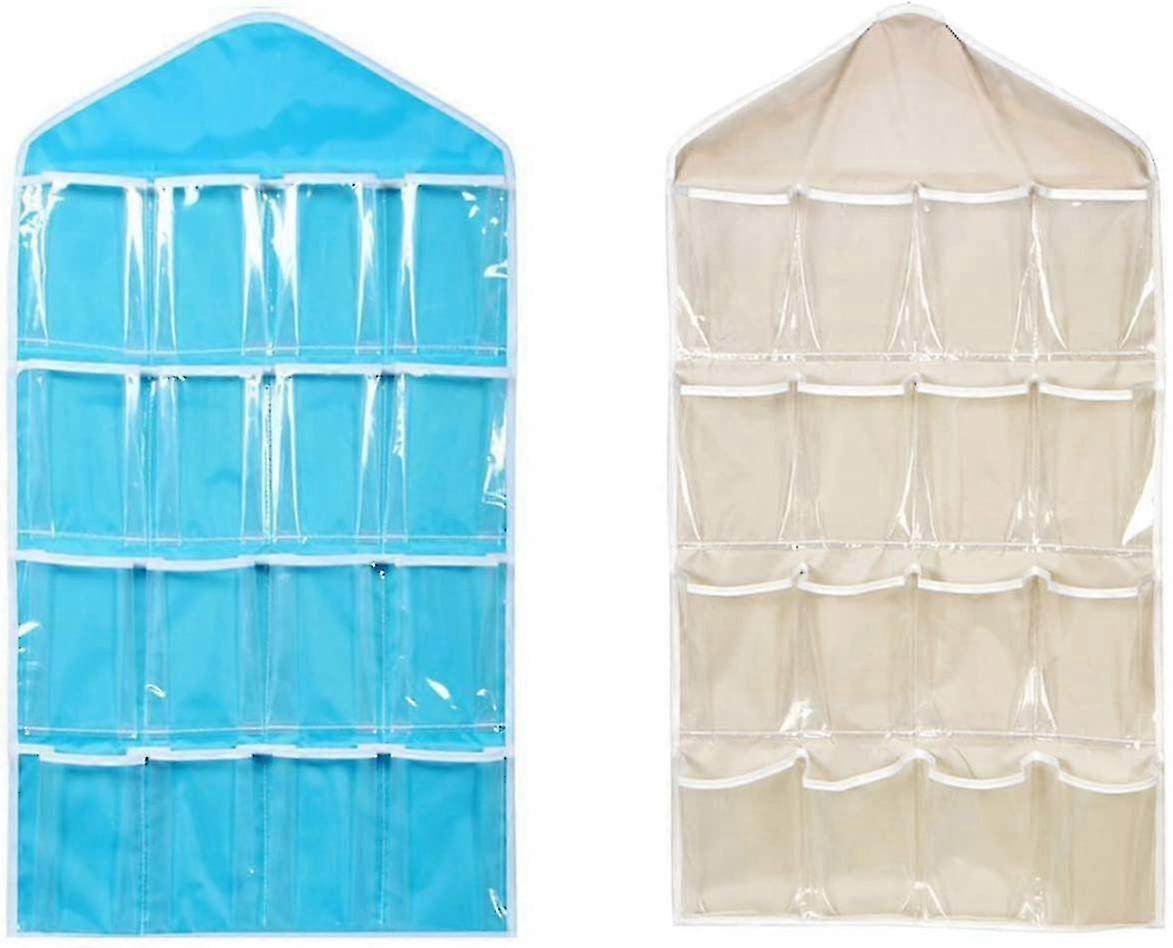 2 Sets Fabric Hanging Storage Organizer, Multi-Layer Transparent Hanging Bag with 16 Pockets for Shoes, Underwear & Jewelry
