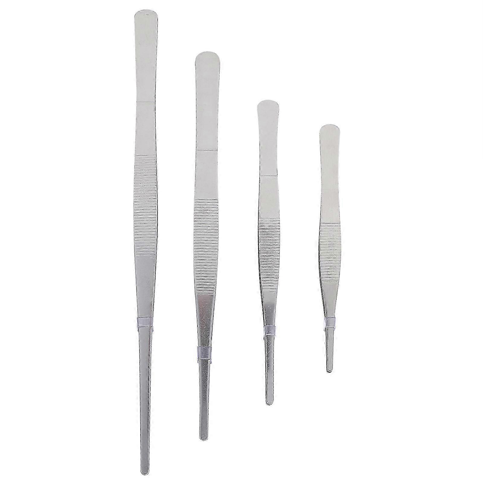 4-Piece Practical Stainless Steel Long Straight Tweezers Set (Silver)