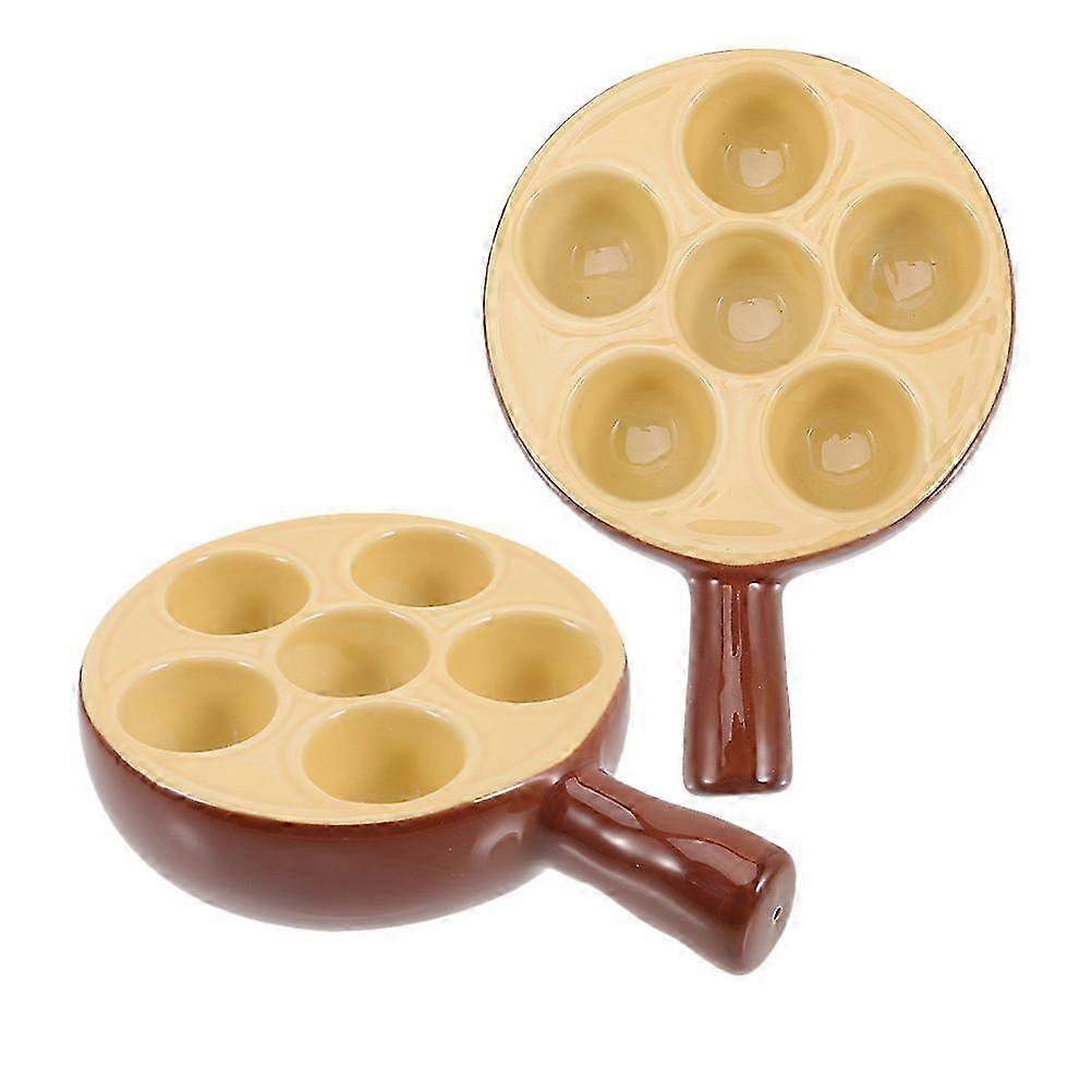 Brown Ceramic Snail Plates for Cooking, Set of 2 Porcelain Escargot Dishes