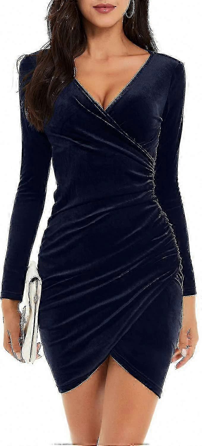 Velvet V-Neck Long Sleeve Ruched Bodycon Party Dress for Women
