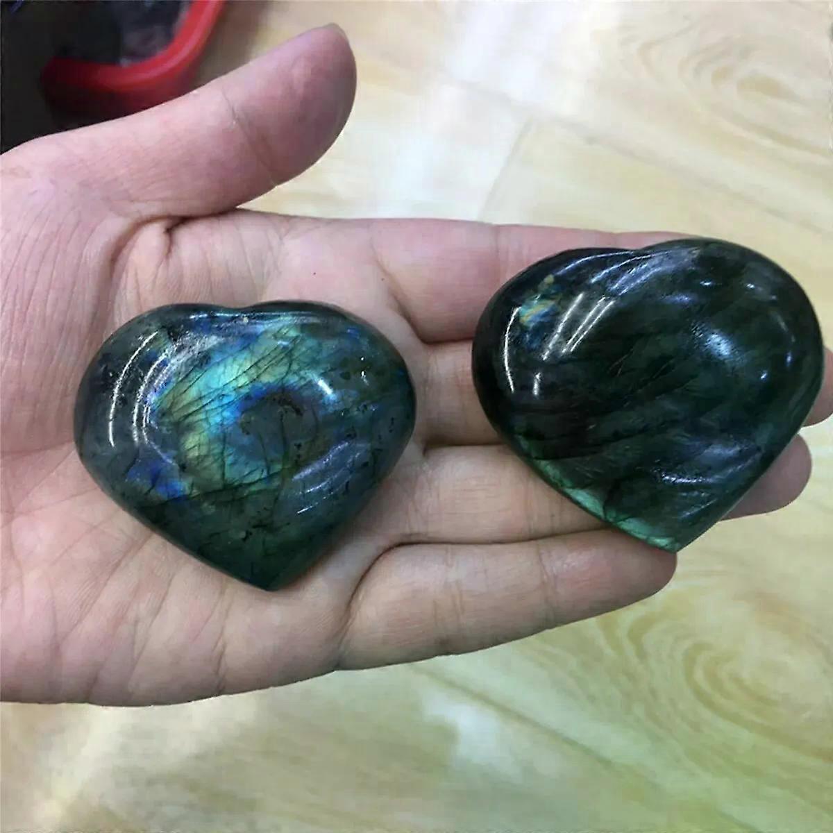 2-Piece Set Natural Labradorite Heart Cabochons - Smooth Polished Flatback Gemstones for Jewelry Making
