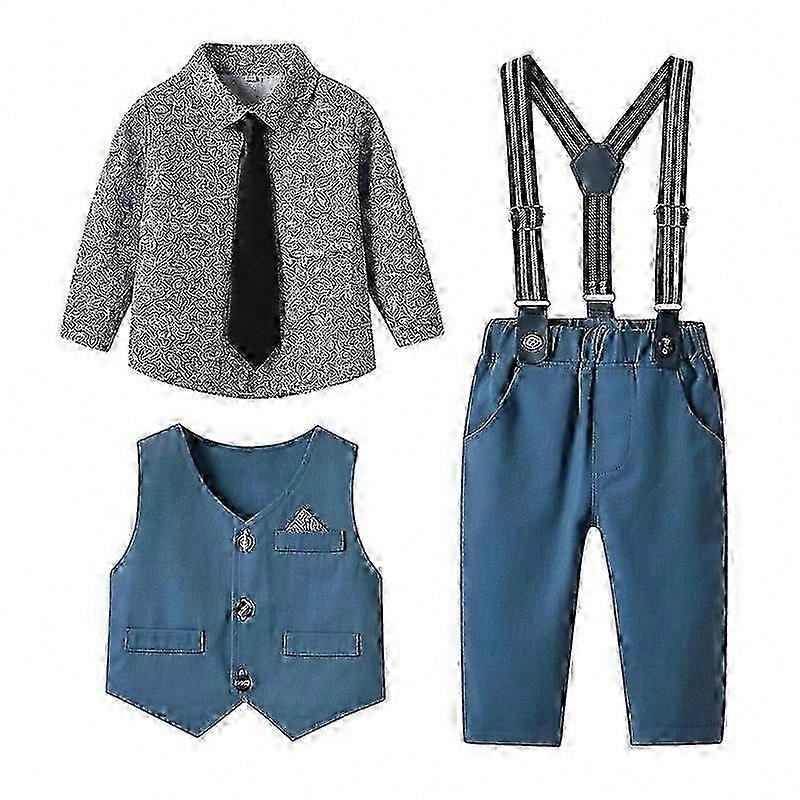 Kids Gentleman Suit Set with Shirt Vest Pants and Tie for Boys Formal Outfit
