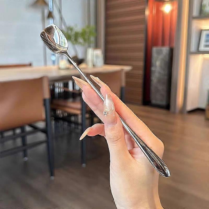 2025 New Stainless Steel Spoon Korean Long Handle Tableware Thicken Stirring Ice Spoon Meal Spoon Household Dinner Spoon