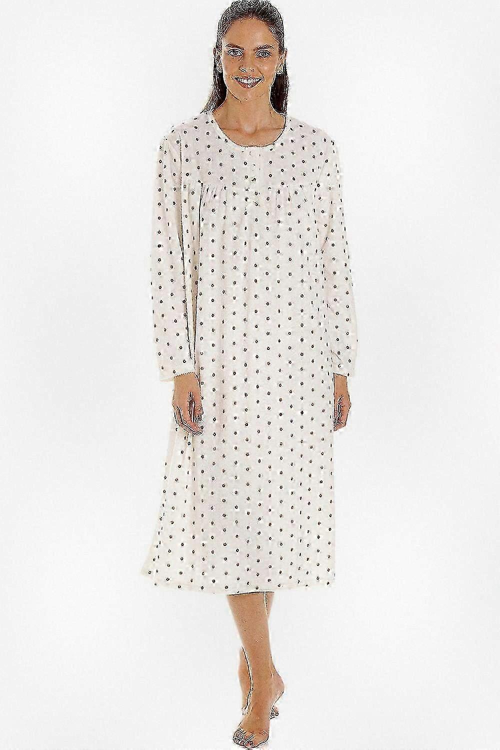 Women's Soft Cotton Nightdress - Comfortable Long Sleeve Polka Dot Nightgown | Breathable Fabric, Cream Colour - Cosy Loungewear Gift for Her