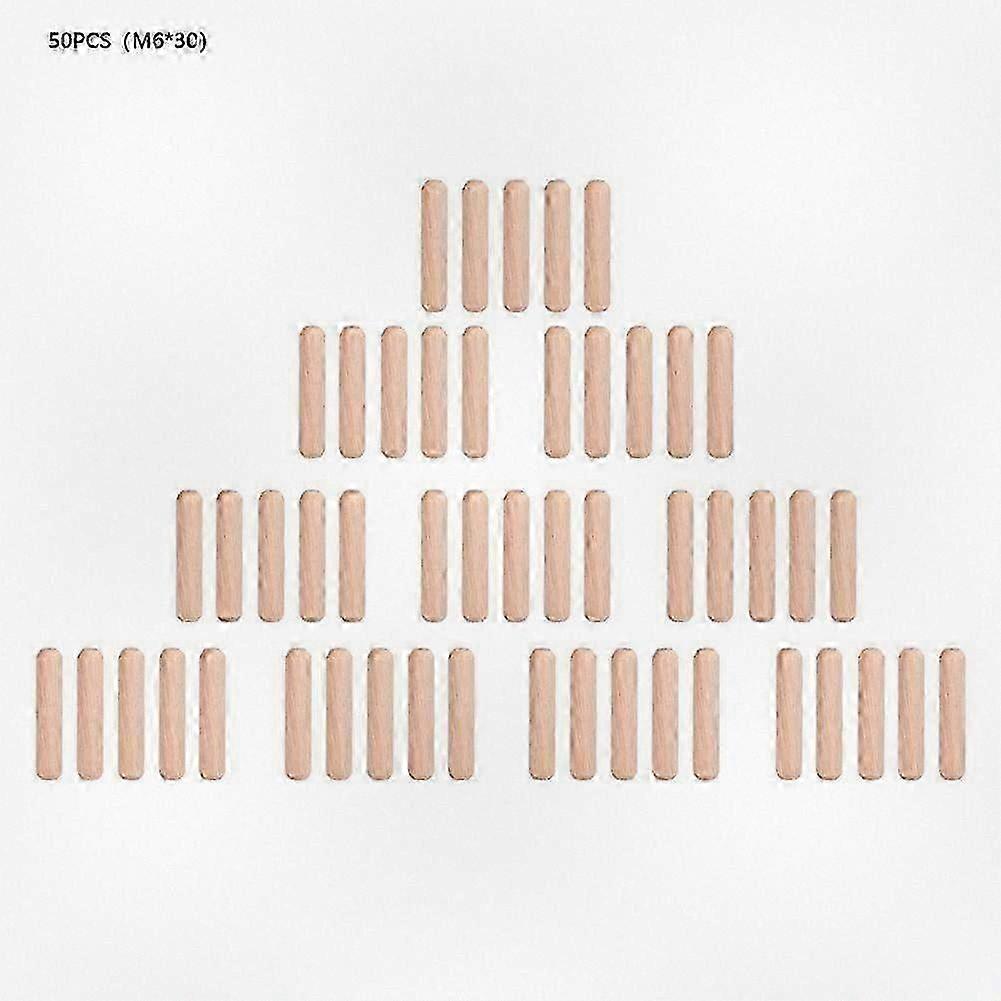 50pcs Fluted Wooden Dowel Pins - Hardwood Furniture Connector Pegs | M6*30, Natural Wood - Essential for Cabinet & DIY Woodworking Projects