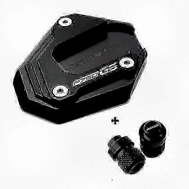 CNC Kickstand Side Stand Enlarger Pad & Valve Caps - For F750GS F850GS | Durable Alloy, Black | Motorcycle Stability & Tyre Protection Upgrade