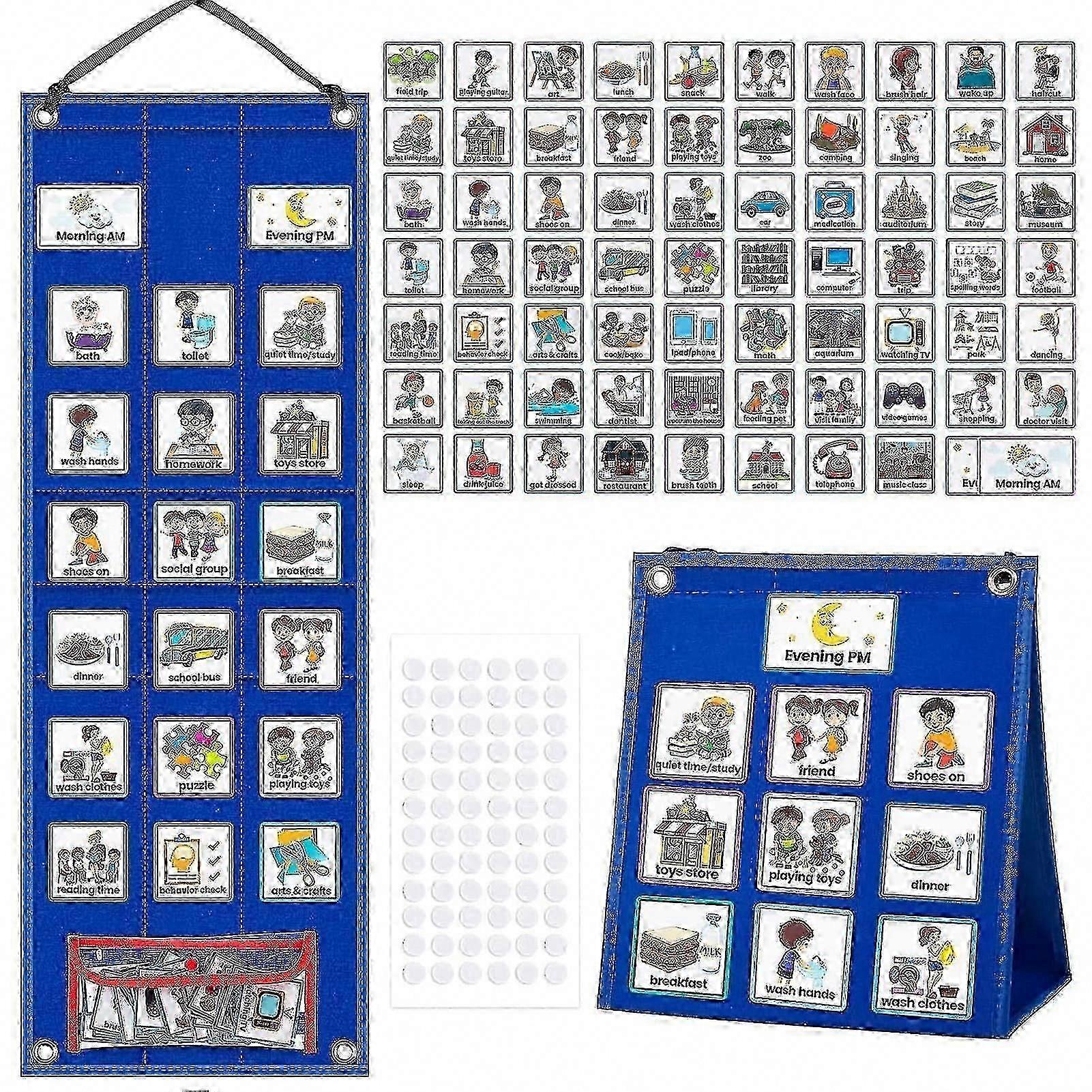 Kids Visual Timetable Daily Routine Chart - Educational Wall Hanging with 70 PECS Cards