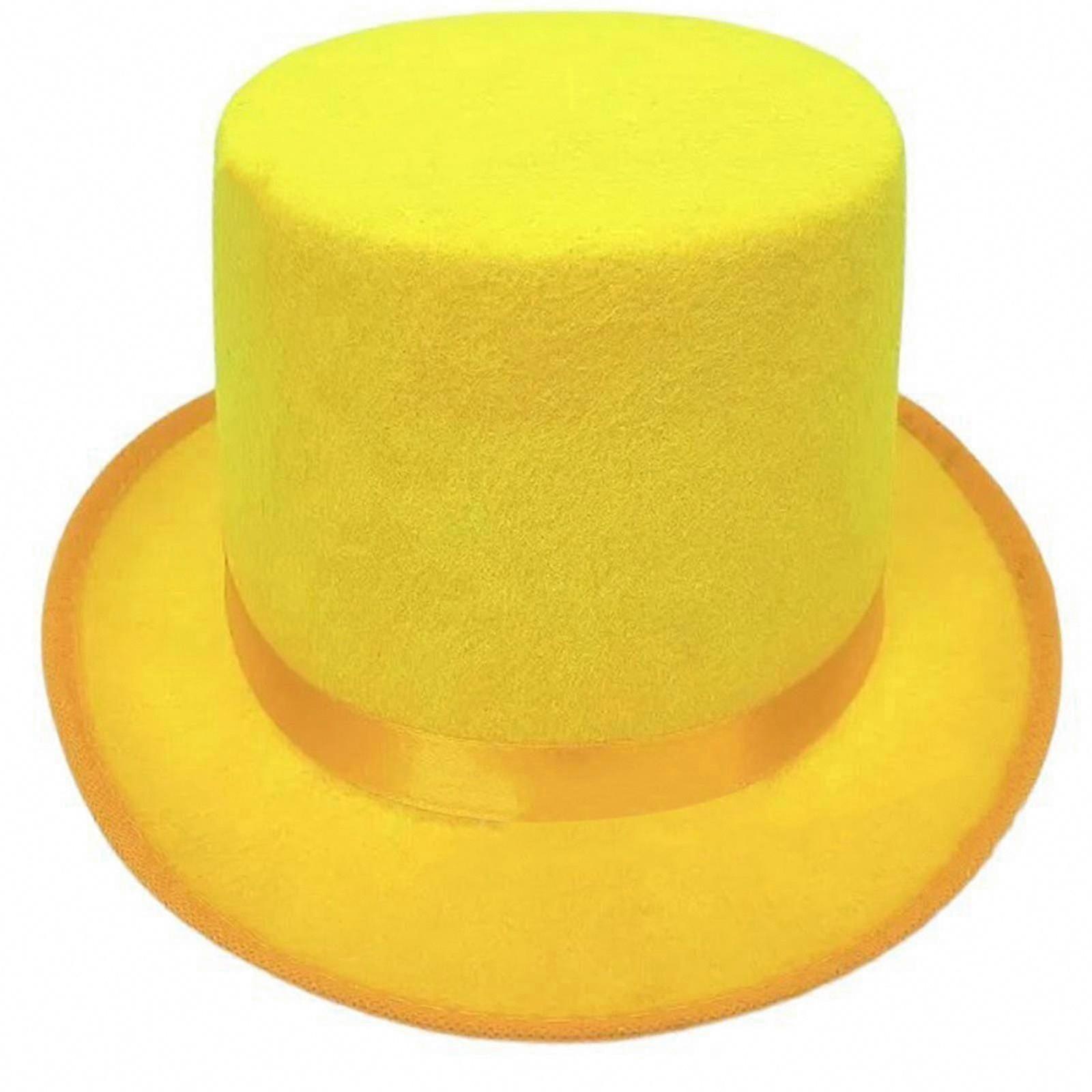 Elegant Tall Top Hat - Yellow Gentleman's Cap for Stage & Cosplay | Felt Material, Roll Trim, Size S | Perfect for Carnivals & Themed Outfits