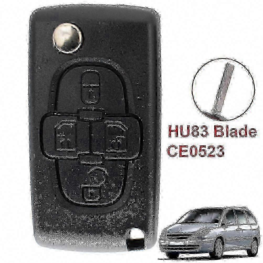 Replacement Car Key Fob Shell Case for Peugeot 807 1007 Citroen C8 | 4 Buttons, HU83 Blade, Black | Durable Repair Part for Remote Keys