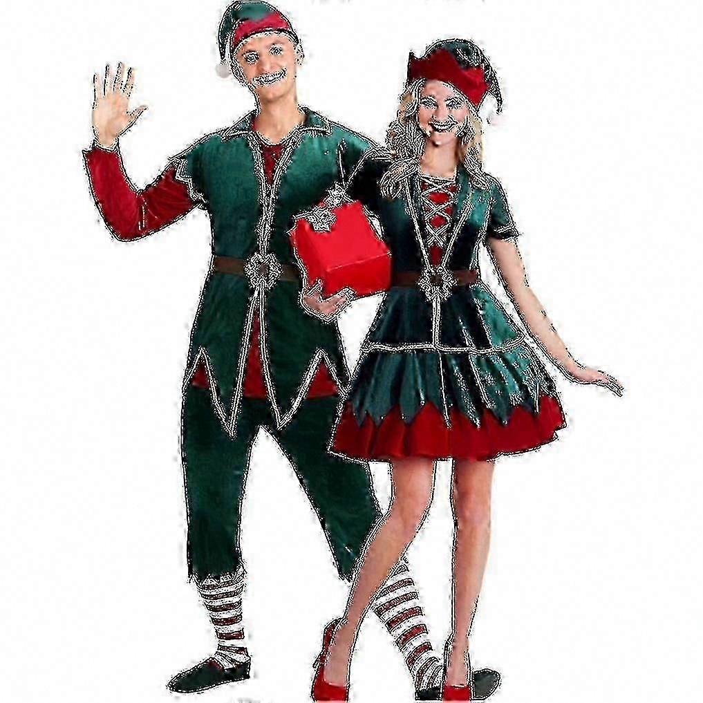 Festive Adult Christmas Elf Costume - Deluxe Holiday Fancy Dress Outfit | Green & Red Velvet Style, Men & Women | Perfect for Xmas Parties & Grotto
