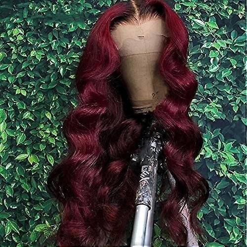 Burgundy Lace Front Wig 99J Ombre Brazilian Human Hair 13x4 Frontal 24 Inch 220% Density