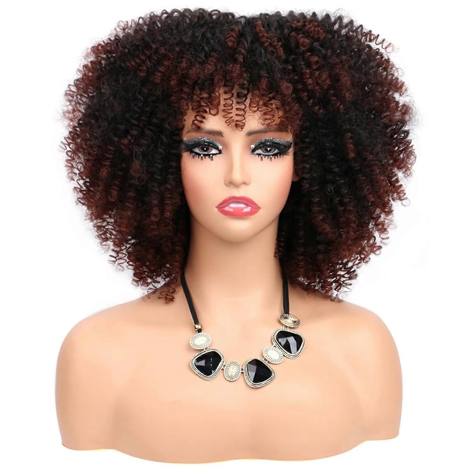 14 Inch Short Curly Bob Wig with Bangs Synthetic Black Brown 1B33 Natural Texture