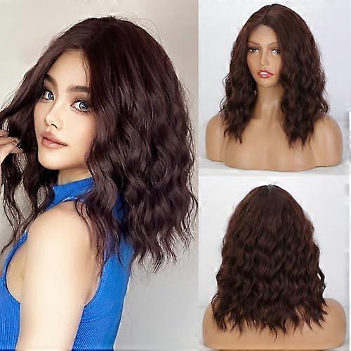 Brown Curly Lace Front Wig Heat Resistant Shoulder Length Synthetic with Realistic Hairline