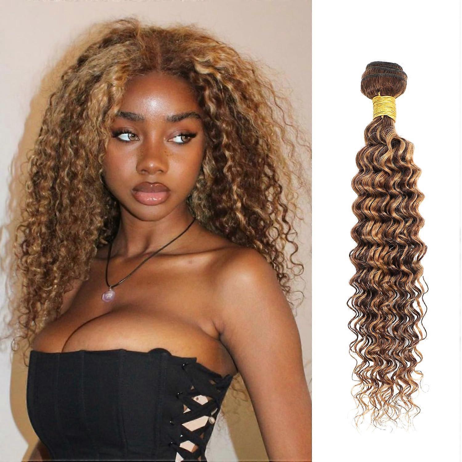 32 Inch Deep Wave Human Hair Bundles Ombre Brown Honey Blonde Highlights 10A Virgin Remy Hair