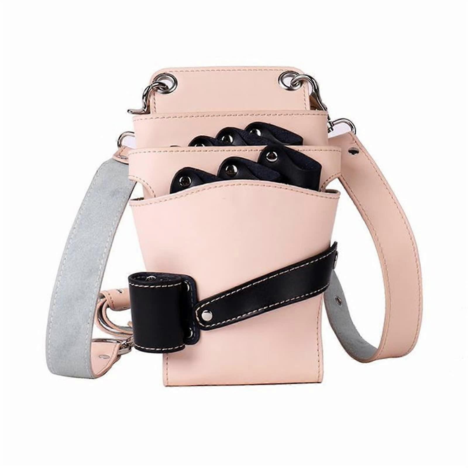 Barber Tool Bag with MultiCarry Strap, Foldable PU Leather Hairdressing Scissor Case, Pink