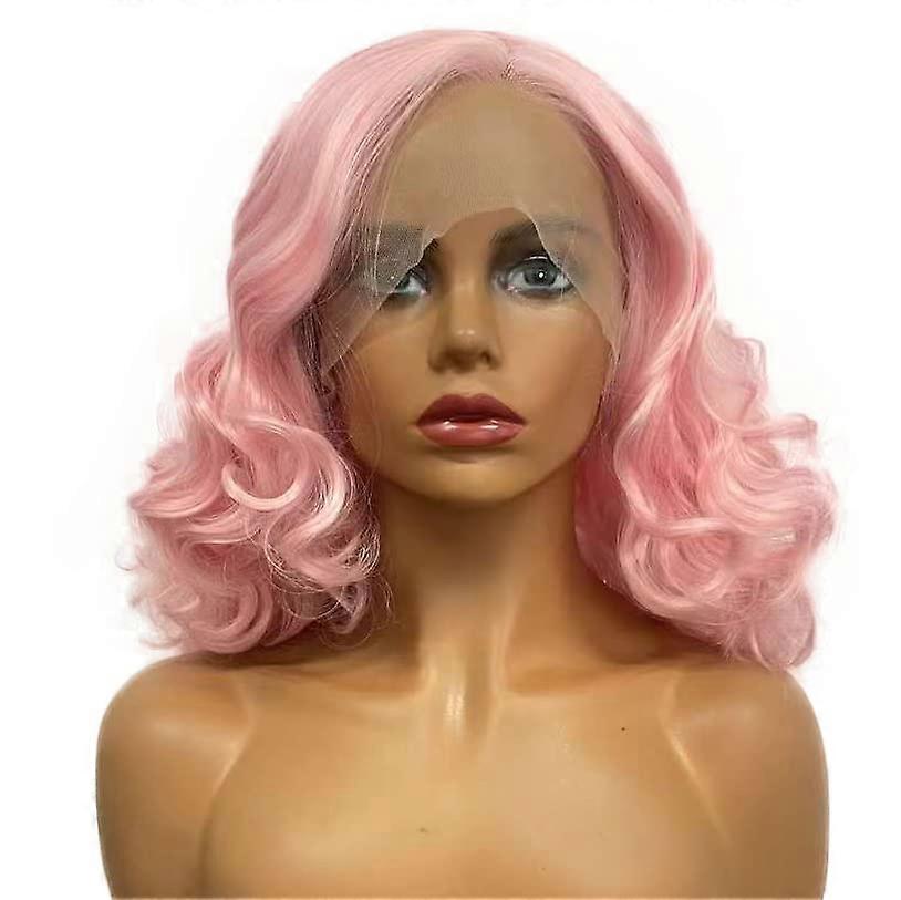 Lace Front Synthetic Wig with Natural Hairline, 13x3 Wavy Ombre Cosplay, Shoulder Length Pink
