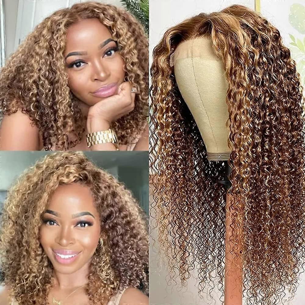 Human Hair Lace Front Wig Ombre Blonde Curly Deep Wave HD Transparent Lace PrePlucked 14Inch