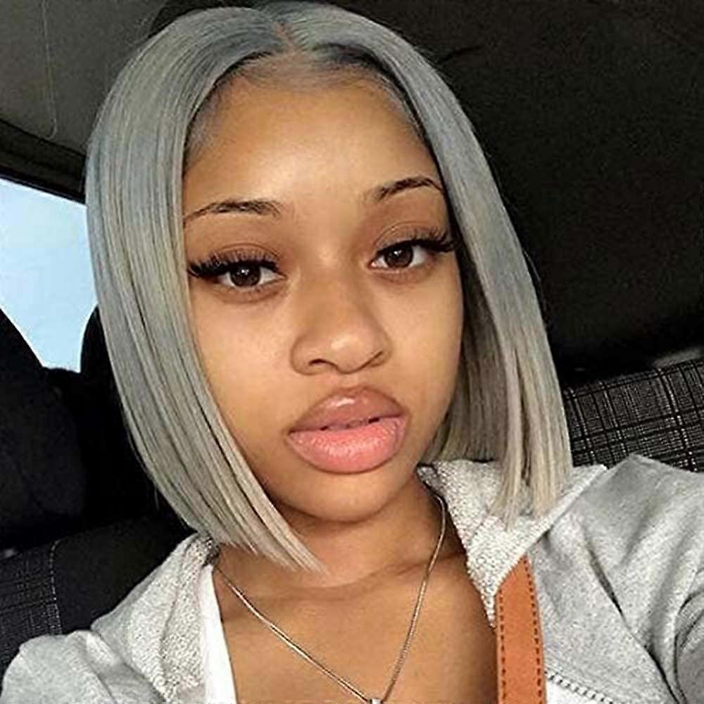 Gray Lace Front Bob Wig 12 Inch Synthetic Heat Resistant with Middle Part Natural Hairline Design