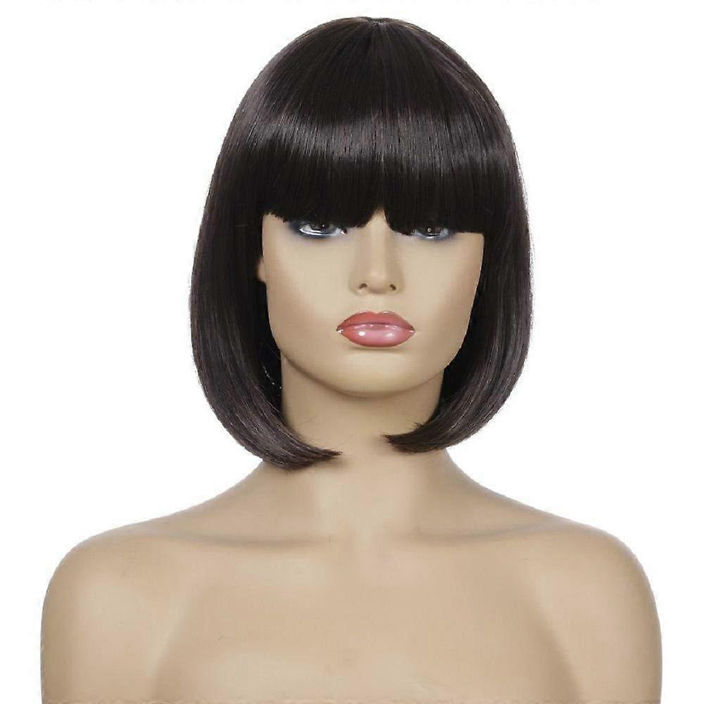 Heat Resistant Synthetic Bob Wig with Bangs, Short Straight 30cm Natural Hair Texture for Women Party Cosplay