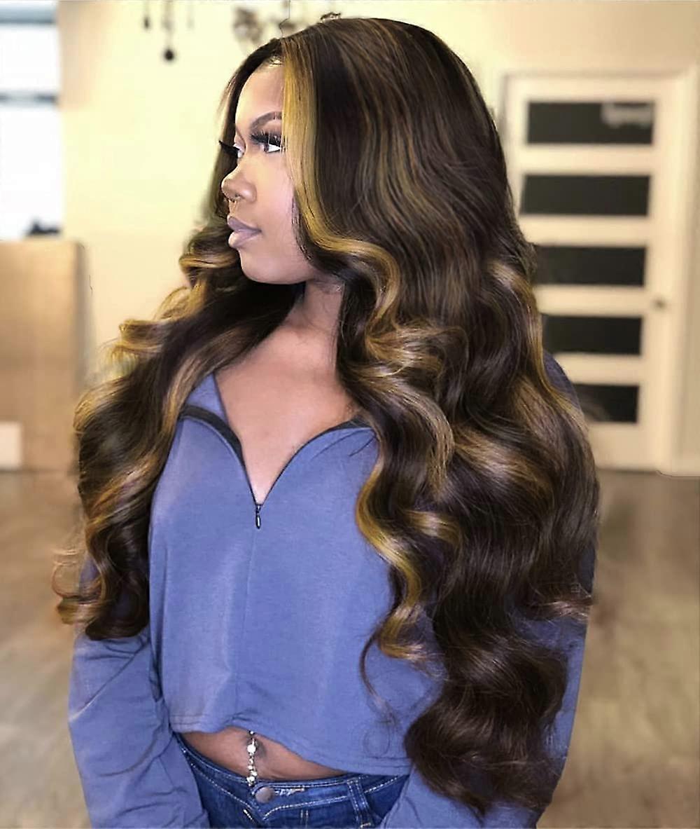 Long Wavy Synthetic Wig for Black Women with Blonde Highlights, Heat Resistant Side Parting