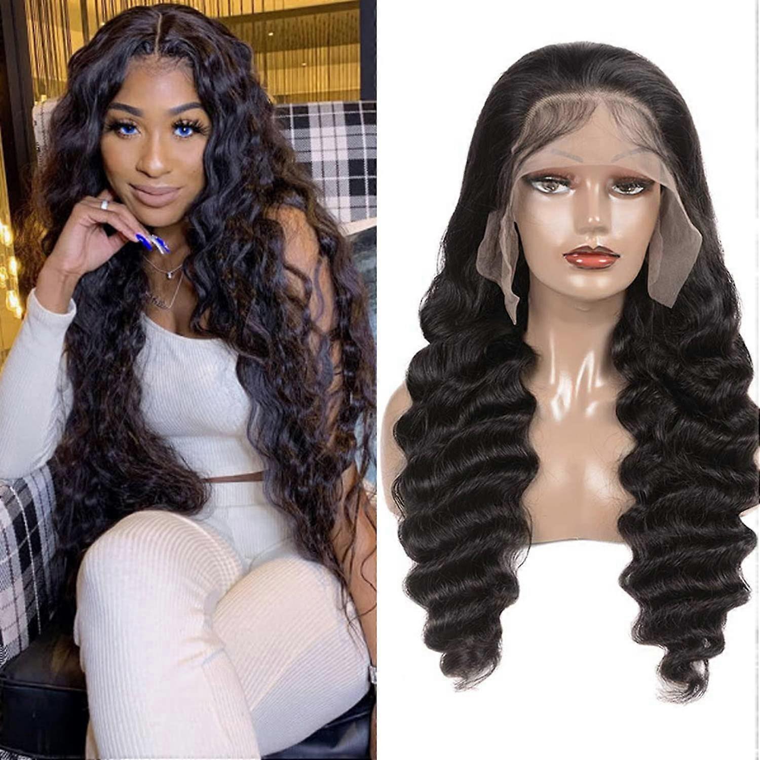 28 Inch Brazilian Loose Deep Wave Human Hair Lace Front Wig 13x6 HD Transparent Lace 150 Density Natural Hairline for Black Women