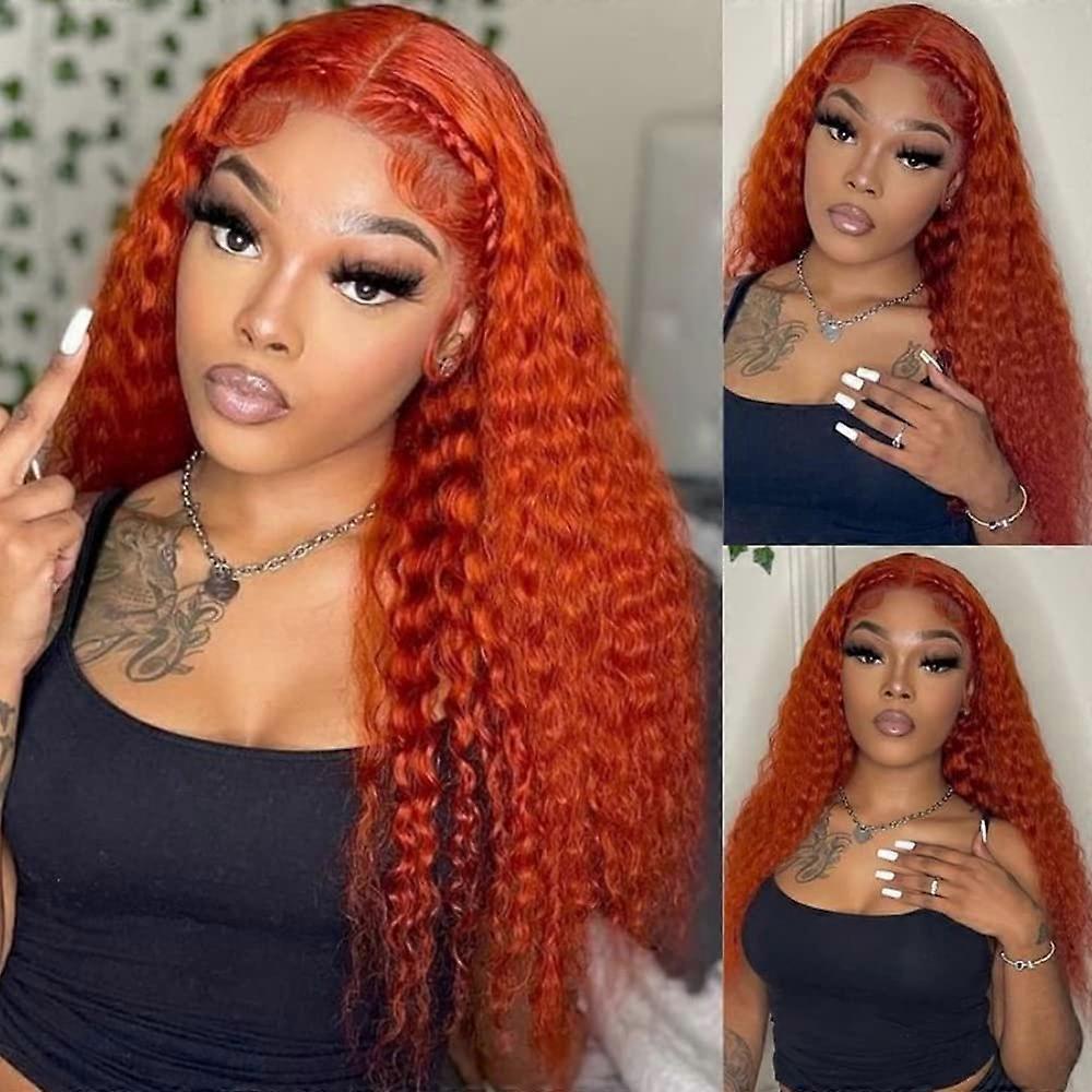 Ginger Orange Water Wave Human Hair Lace Front Wig 24inch 150% Density for Black Women