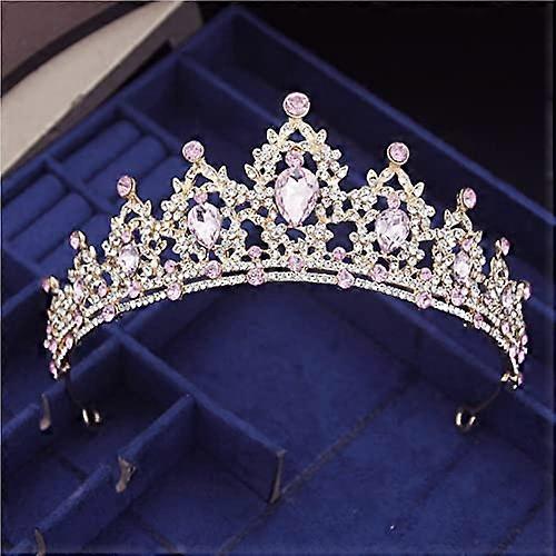 Bridal Crown with Sparkling Rhinestones Vintage Wedding Tiara Headpiece Mix Pink for Bride