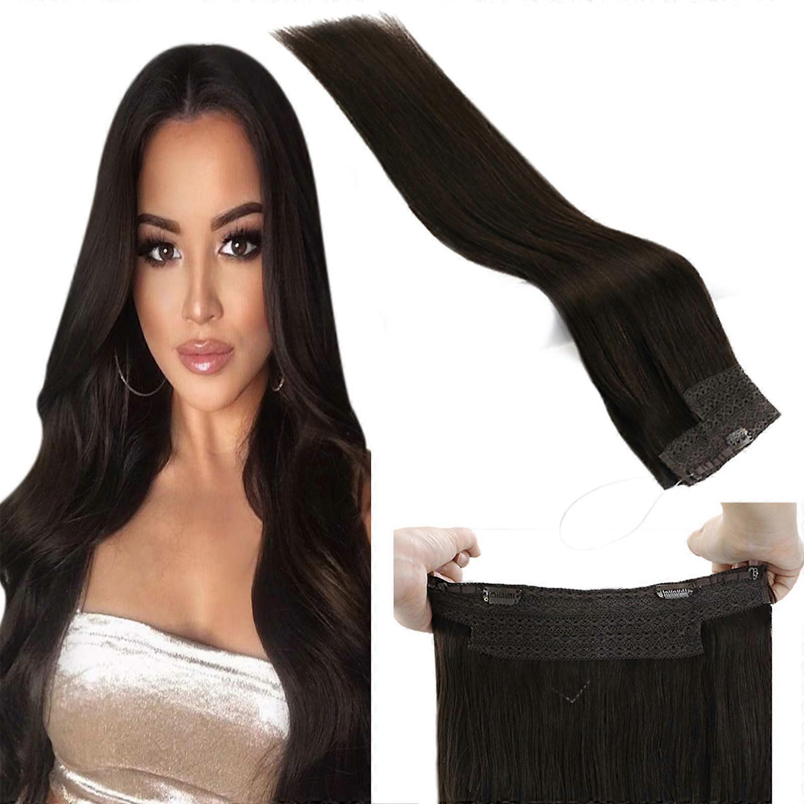 Halo Hair Extensions Real Human Hair 22 Inch Darkest Brown Invisible Wire for Volume and Length