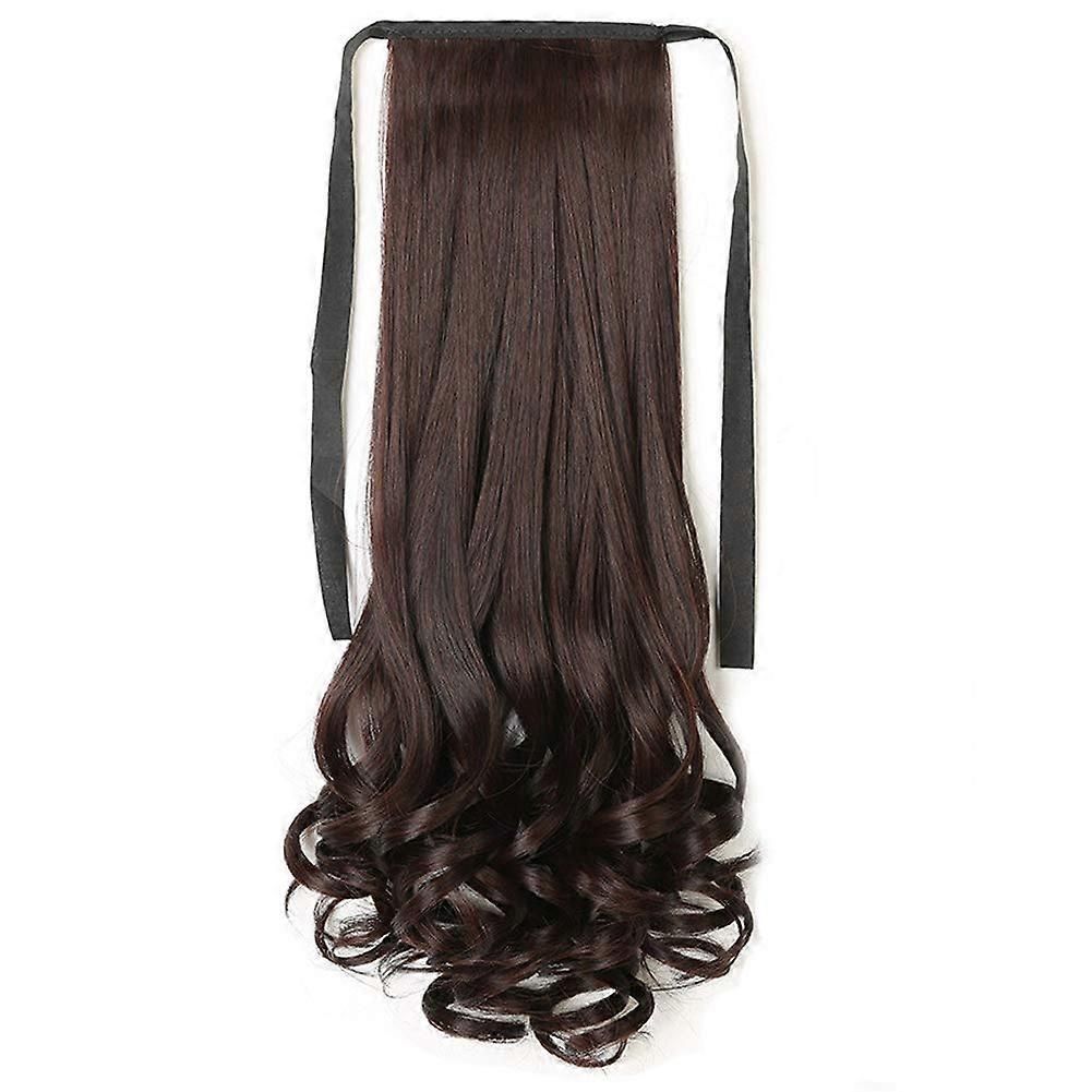 Ponytail Hair Extension Clip In Dark Brown 15 Inch Long Wavy Wrap Around Hair Piece