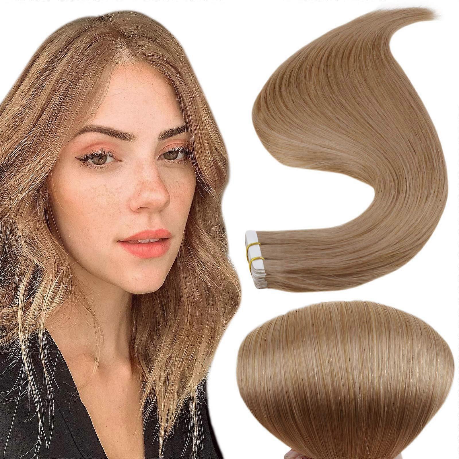 24 Inch Light Golden Brown Tape in Human Hair Extensions Seamless Blend Instant Volume 20pcs
