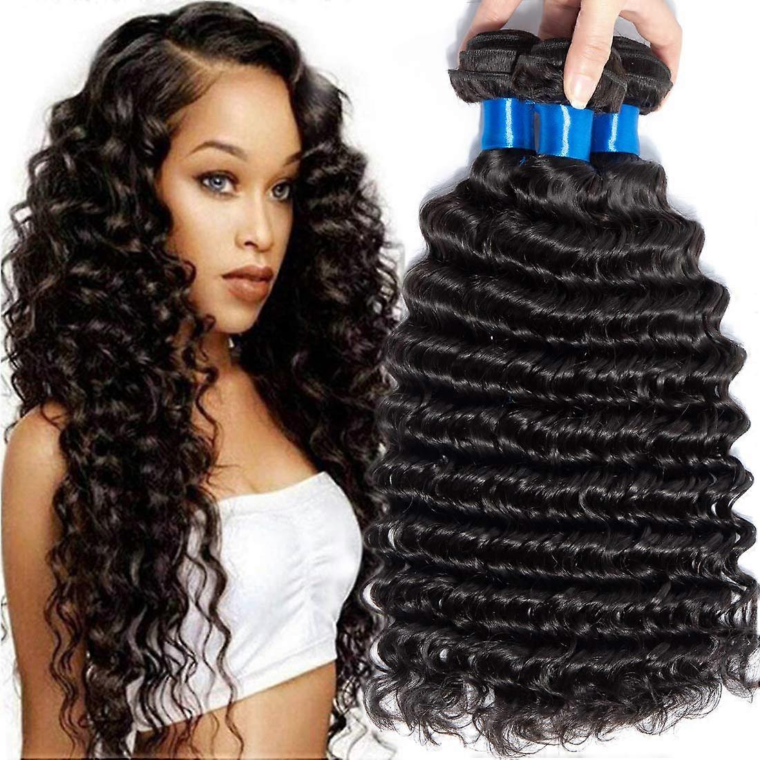 Virgin Brazilian Deep Wave Hair Extensions 3 Bundles Unprocessed Human Hair Weave 24 26 28