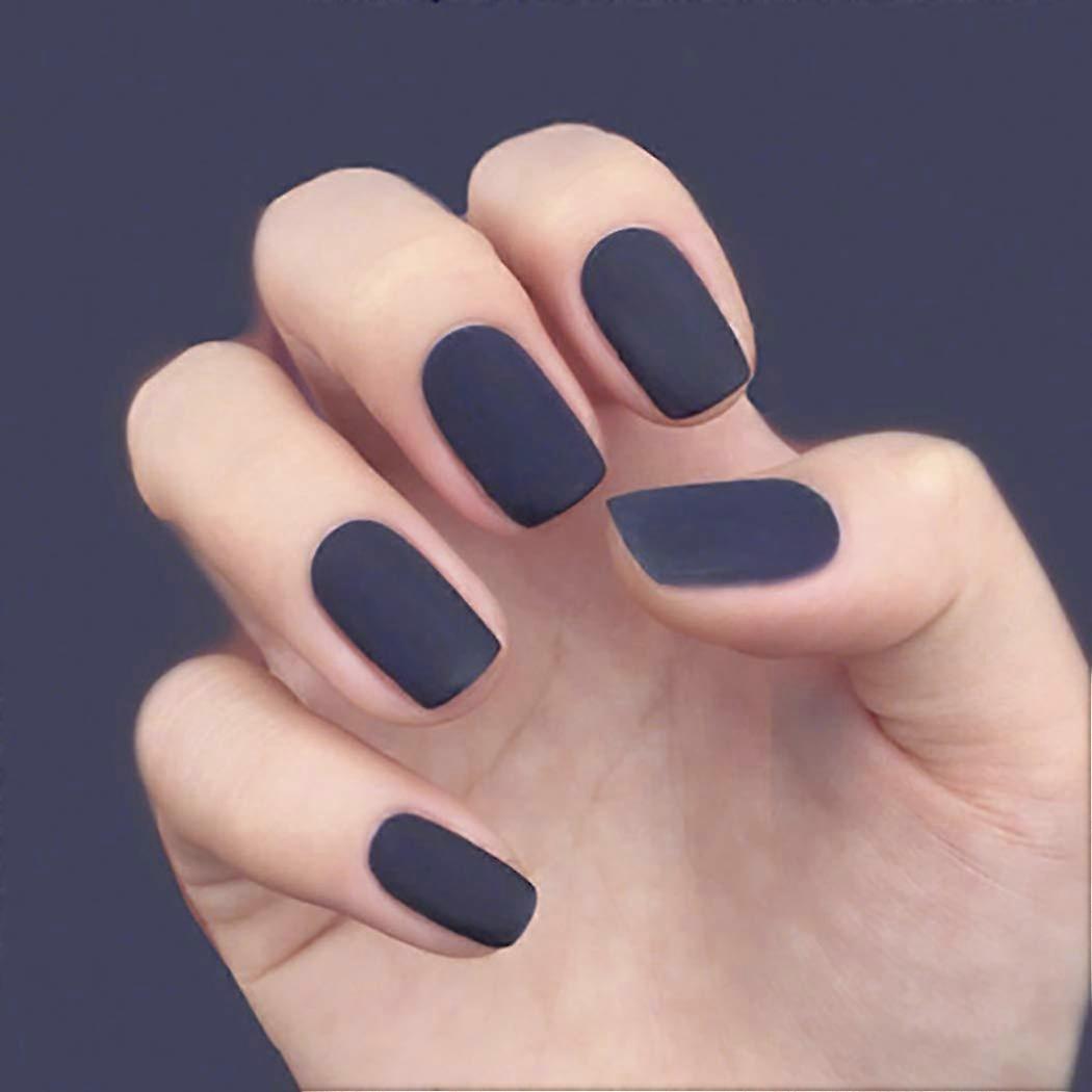 Dark Blue Matte Square Press On Nails Long Fake Nails with Complete Kit, 24pcs for Women