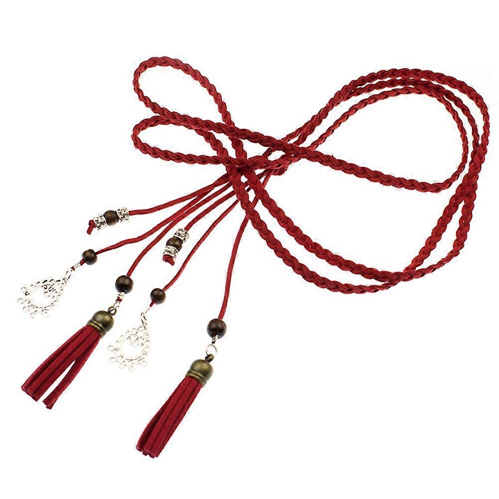 Women's Hair Accessory Red Tassel Long Ribbon Hair Tie with Beads for Ancient Costume
