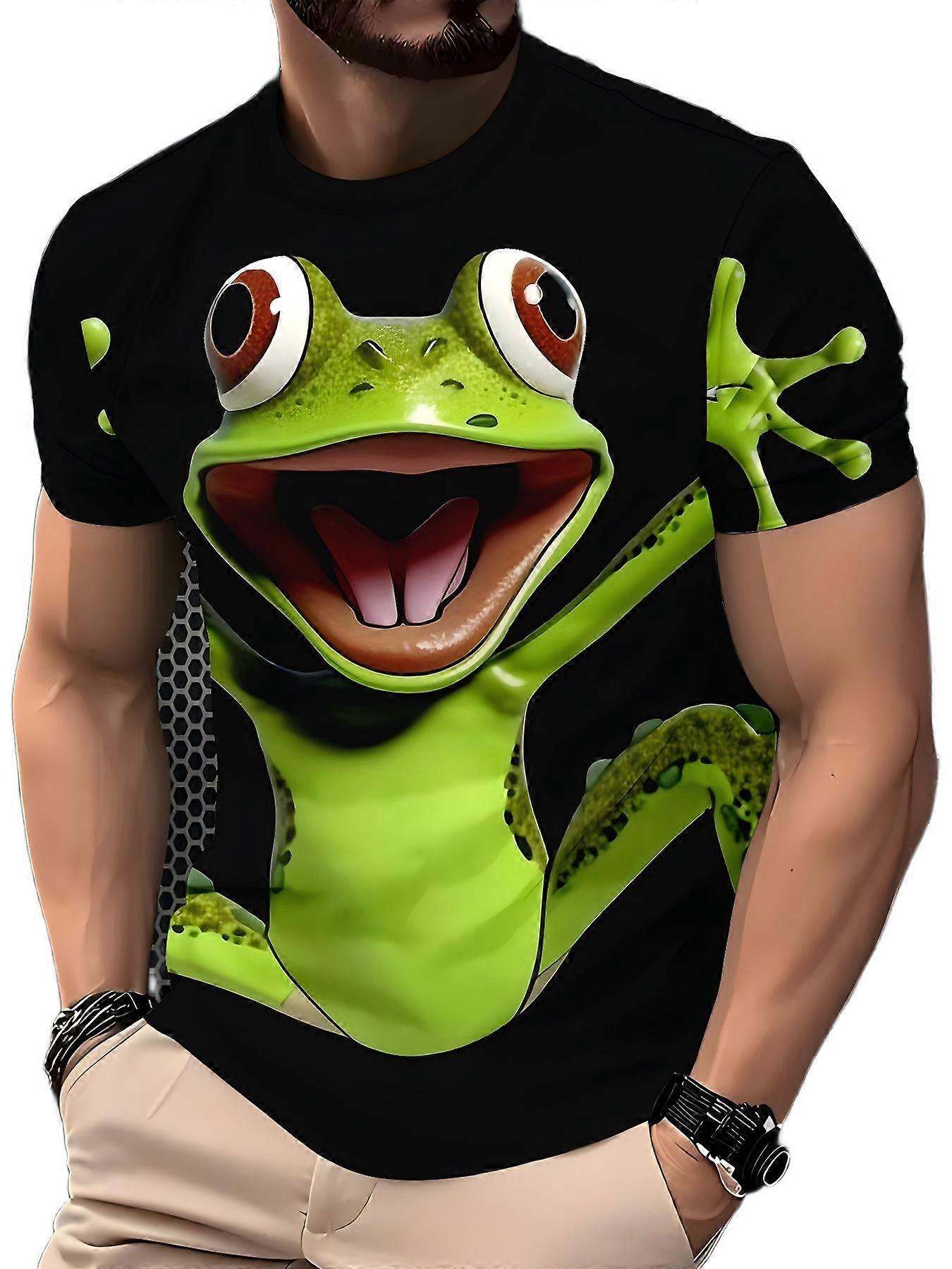 Men’s Playful 3D Graphic T Shirt Green Frog Art Print Casual Fun Tee