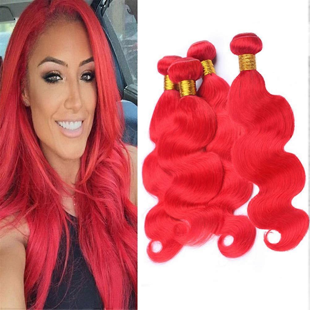Brazilian Red Body Wave Human Hair Bundles Vibrant Color Mixed Length Virgin Extensions 4pcs